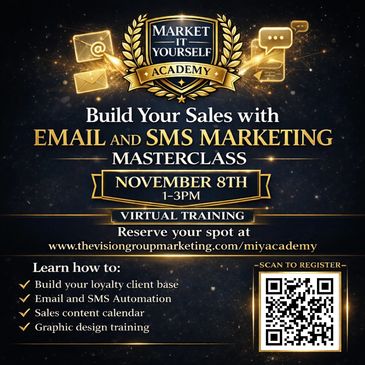 Join the virtual Email and SMS Marketing Masterclass on Nov 8, 1–3 PM. Learn to build loyal customers, automate campaigns, plan sales content, and design graphics that increase revenue. Ideal for business owners, nonprofits, and professionals. $40 for the early bird special and $50 regular price.