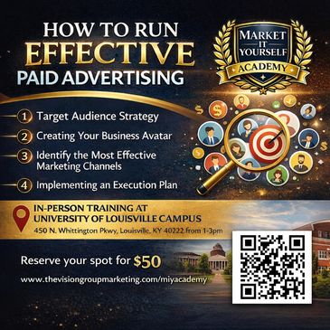 Learn to create paid ads that deliver results. Join our workshop on Sept 5, 1–3 PM at the University of Louisville (450 N. Whittington Pkwy). Designed for entrepreneurs ready to replace guesswork with strategy, targeting, and clear execution. $40 for the early bird special and $50 regular price.